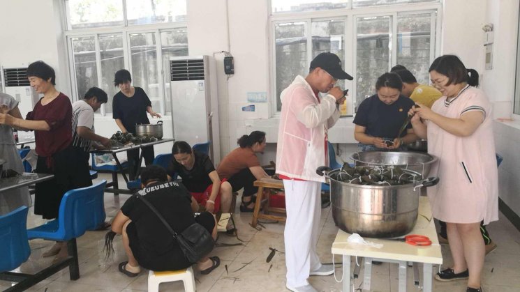 在大家相互交流,相互學(xué)習(xí)的和諧氛圍中,不知不覺,粽子已經(jīng)堆滿了好幾鍋。此時,劉總、孟總等領(lǐng)導(dǎo)班子趕到食堂現(xiàn)場體驗包粽子,與員工互動,大家都沉浸在體驗傳統(tǒng)文化的愉悅中。
