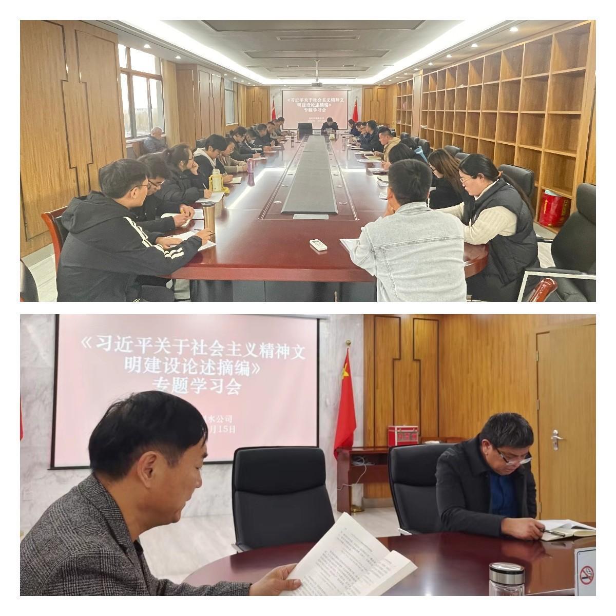 為深入學(xué)習(xí)貫徹習(xí)近平總書(shū)記關(guān)于精神文明建設(shè)的重要論述,高舉思想旗幟、突出價(jià)值引領(lǐng),制水公司組織黨員干部、一線(xiàn)職工集體學(xué)習(xí)《習(xí)近平關(guān)于社會(huì)主義精神文明建設(shè)論述摘編》。